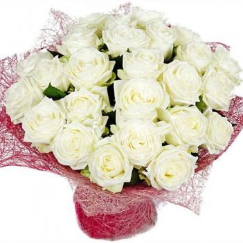 Состав: роза 25 шт, хризантема кустовая 20шт, декор.