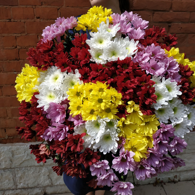 Хризантема - идеальна для создания пышного, сочного и красочного букета. В странах востока хризантема – один из самых почитаемых и значимых цветков. В Японии хризантема даже изображена на гербе страны. так что хризантема - идеальный выбор для букета по любому поводу.