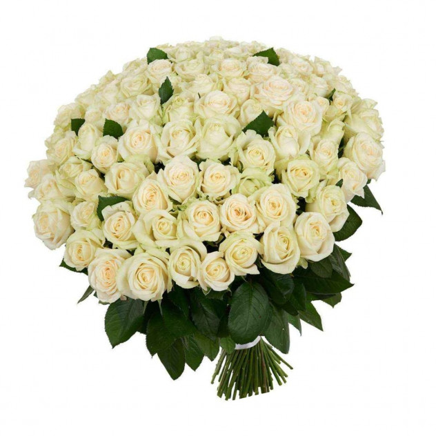 Состав: Упаковка (пленка с лентой), Доставка, Роза белая 60 см 101шт.