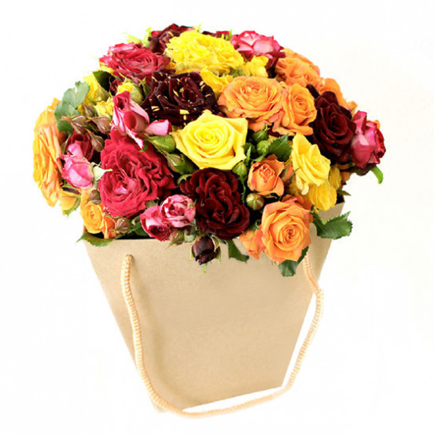 Роза кустовая 51шт., Пакет крафт с аквабоксом