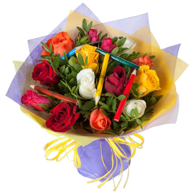 Фисташка 10шт., Роза россия/ кения 40 см 15шт., Упаковка для букета: фетр, Декор букета и композиции.